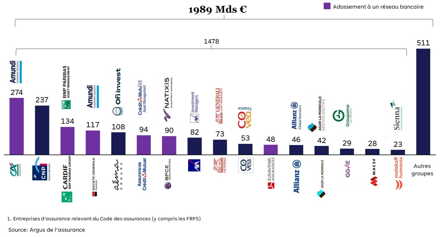 Encours totaux de l’assurance-vie en france à fin 2024 par assureur en Mds €