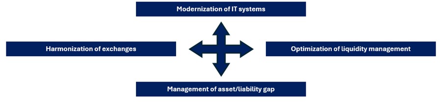• The second aims to align settlement cycles as closely as possible: synchronize the liability cycle (NAV, subscriptions/redemptions) with that of assets. However, this requires strong automation of NAV production (approximately 4 hours instead of the current 28 hours), harmonization of exchanges with distributors, and operational capacity to process flows in near-real time. This brings us back to the first two improvement axes: IT systems modernization and harmonization of exchanges.